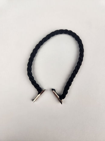 #80 elastic (or thicker) assembled with silver or gold color barbs on each end.